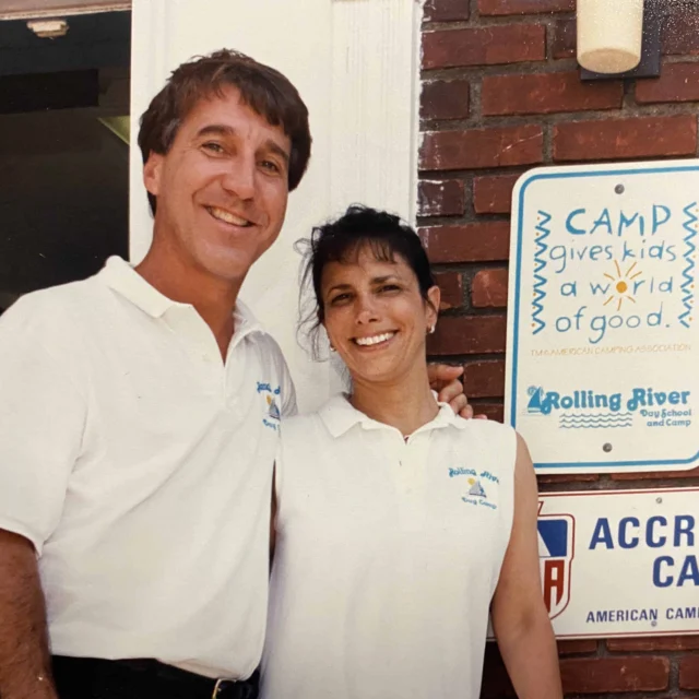 Rolling River was named through a local contest called “Name That Camp.” An East Rockaway elementary school student named Jon DeSantis suggested the name “Rolling River” and won free tuition for the first year. An extensive team of friends and family pitched in to get the camp off the ground. Rolling River opened in September 1992 as a day school. Opening day for summer camp was June 29, 1993 and Rhonda and Mark’s three children, Marissa, Alison and Jonathan, were some of the first campers to attend.