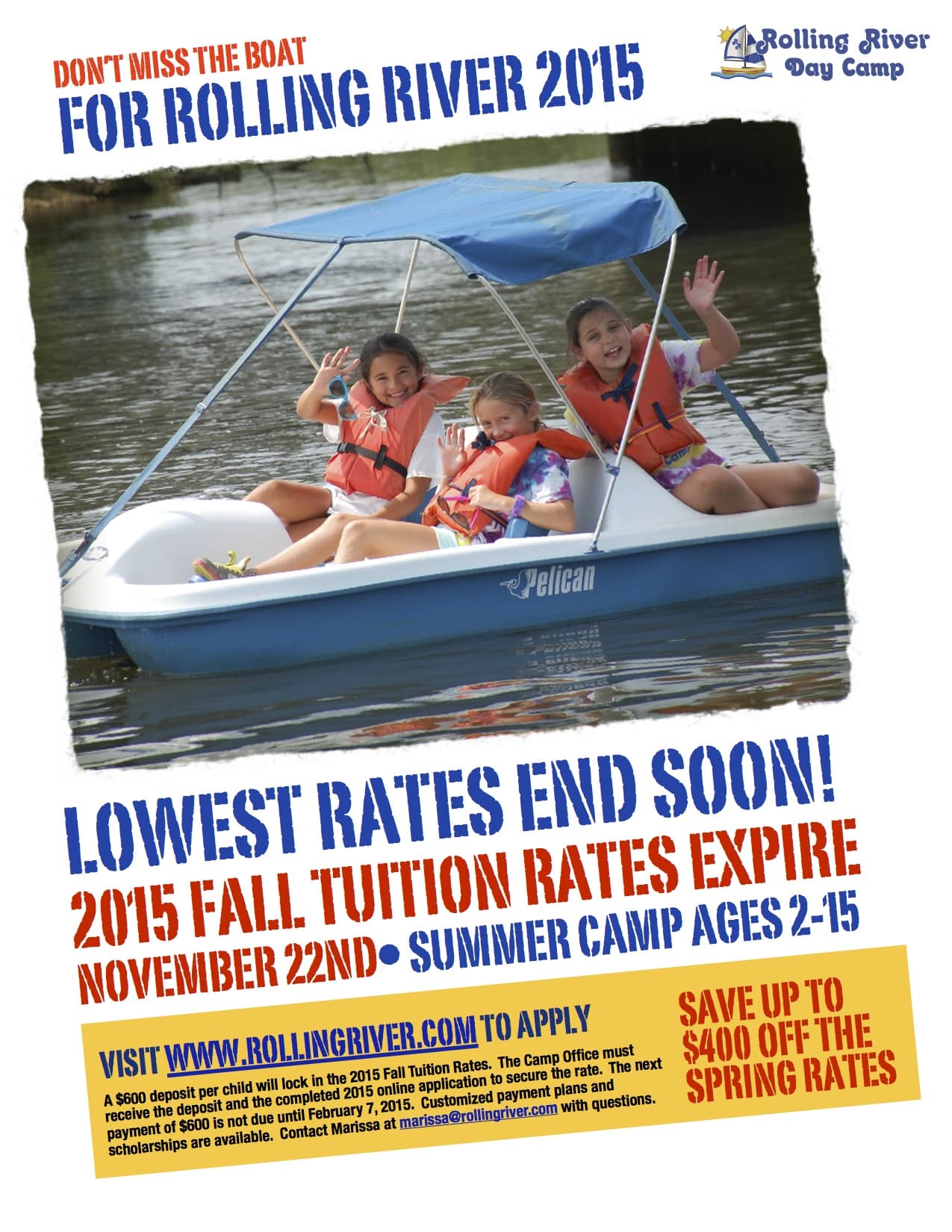 Early Bird Registration for Camp 2015 Ends Saturday, November 22