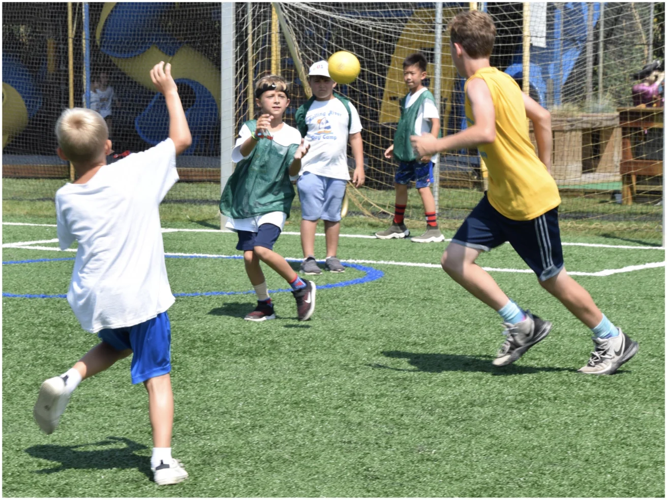 Our popular Intramural program breaks groups into teams for weekly competitive athletic events. Winners of each Intramural bracket receive the coveted Intramural t-shirt at the end of the summer. Kindergarten & first grade groups participate in a non-competitive introduction to Intramurals, while second through eighth grade groups compete for points. Standings are posted each week by the Hockey Rink and basketball courts.