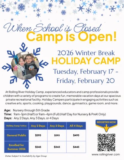 Looking for a fun and reliable option during the February school break? Rolling River Day Camp is offering Holiday Camp from February 17-20, giving kids a full day of activities in a safe, structured, and energetic camp environment.
