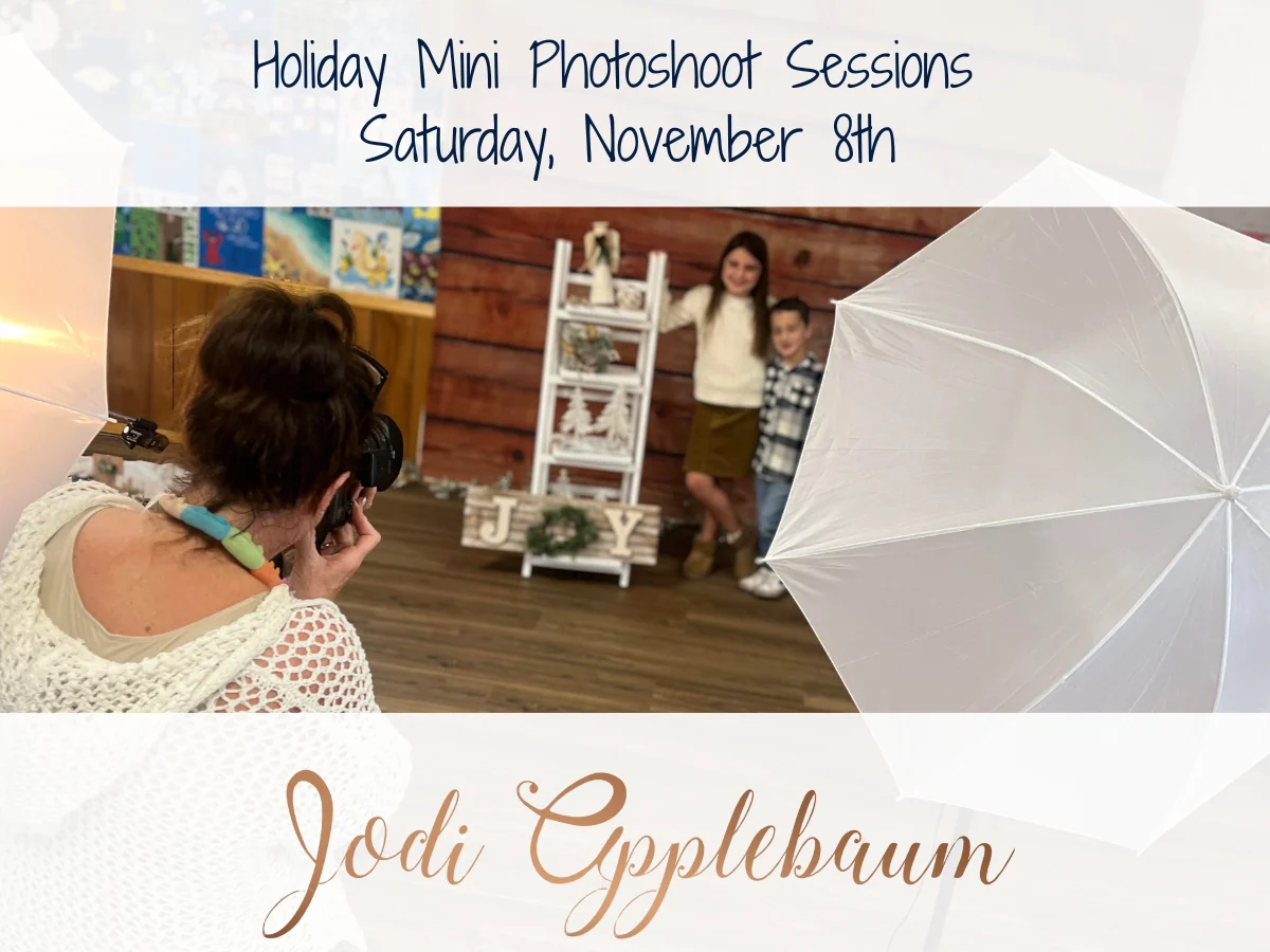 Saturday, November 8th 9am-5pm (Conveniently located in the Rolling River Day Camp Auditorium with Holiday backdrops)